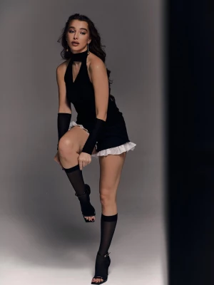 - Стиль. Девушка умело подчеркивает свою внешность, сохраняя грань между красотой и легкой провокацией.